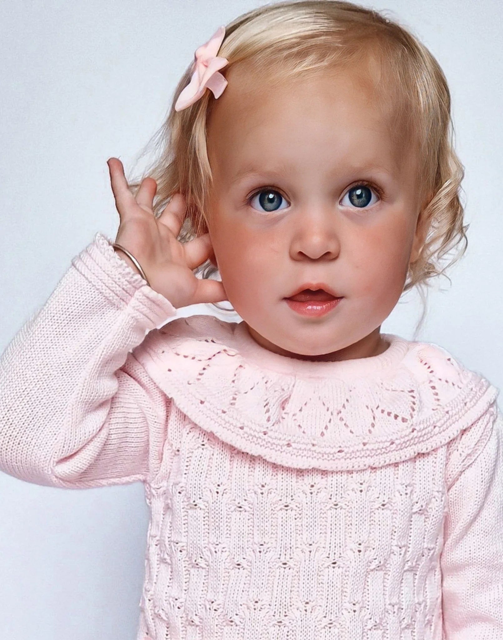 Beautifully soft pastel pink a-line dress by Pex. Pretty knitted textures with an elaborate frill collar along with two sumptuous bows at the waist.