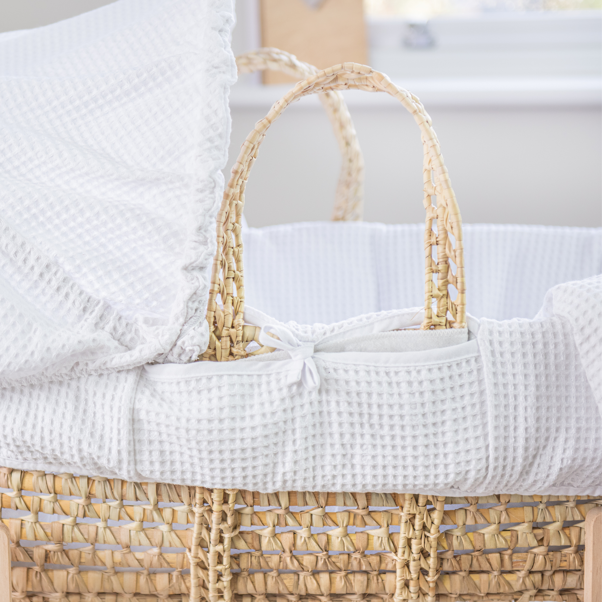 Nestle your newborn in the timeless beauty of our Waffle Palm Moses Basket. Crafted with love and care, this traditional masterpiece offers the perfect sanctuary for your little one's peaceful sleep.