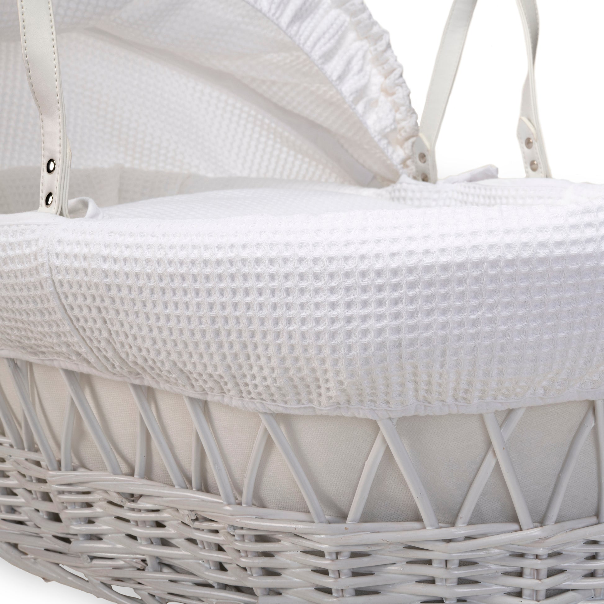 Discover the perfect blend of contemporary style and cosy comfort for your little one with our Waffle White Wicker Moses Basket. Crafted with meticulous care, this exquisite piece combines modern aesthetics with timeless craftsmanship to create an inviting sleep space for your baby.